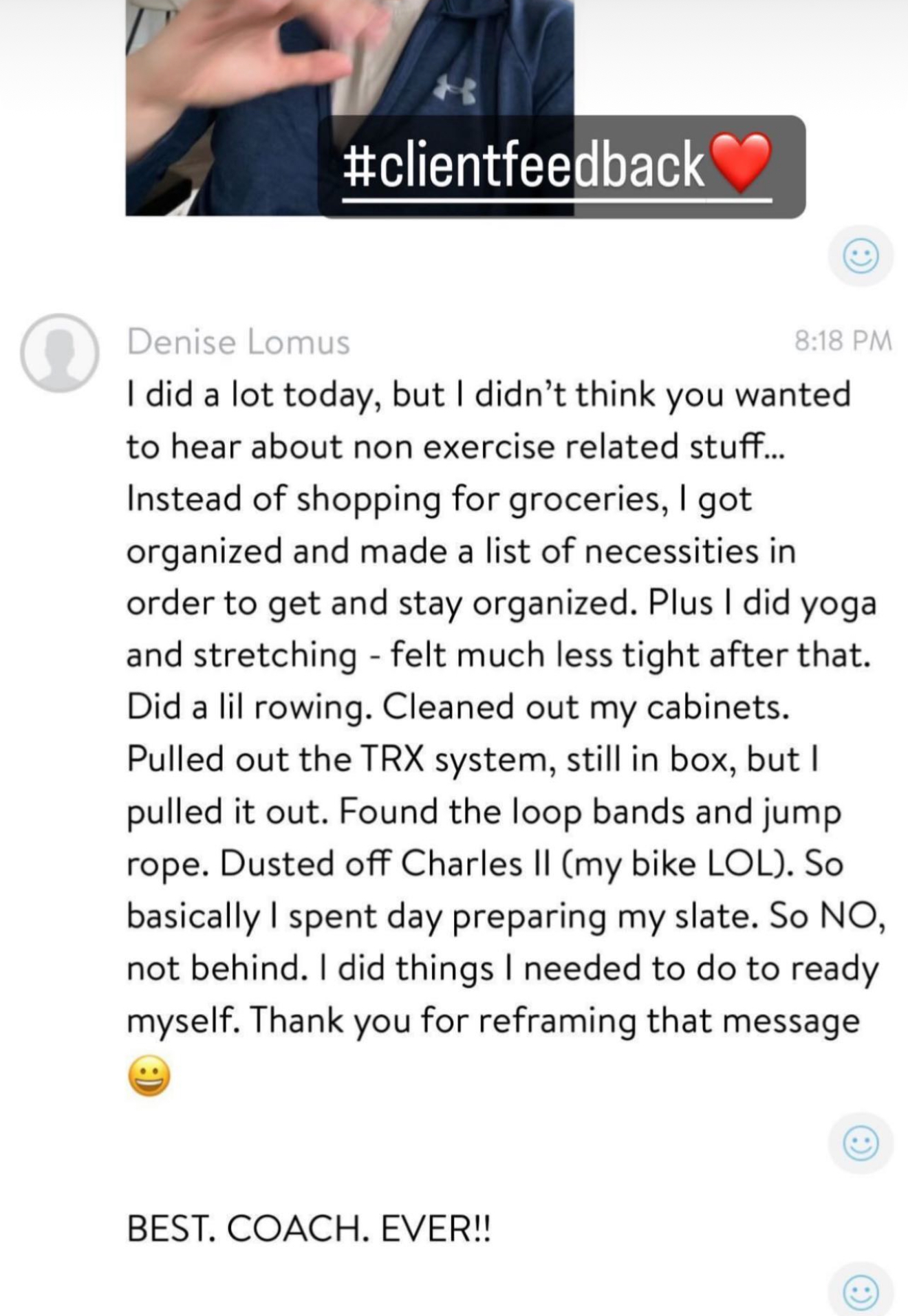 This is about progress, not perfect. The goal is 80%. What type of body and health would you have if you stuck to healthy actions 80% of the time? An effing great one. :)