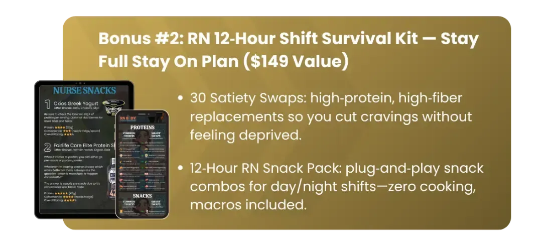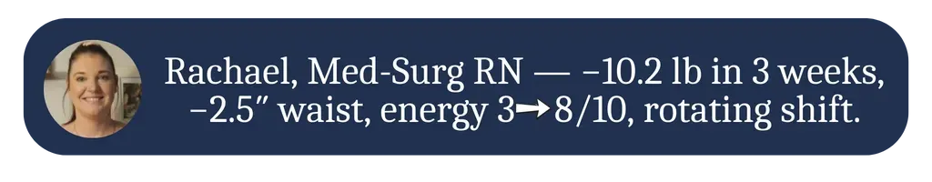 Built using the Nurse Metabolic Shift Method™ so shifts, stress, and your body are actually accounted for.